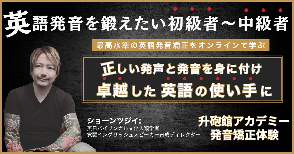 英語道場升砲館は、1995年に京都で自身のスクールを開校して以来、英語発音矯正で日本全国、海外から生徒を集めてきた私ショーン・ツジイが、本物の英語発音教育および英語コミュニケーション術を限られた人に伝えるべく2015年7月に創立した英語道場です。